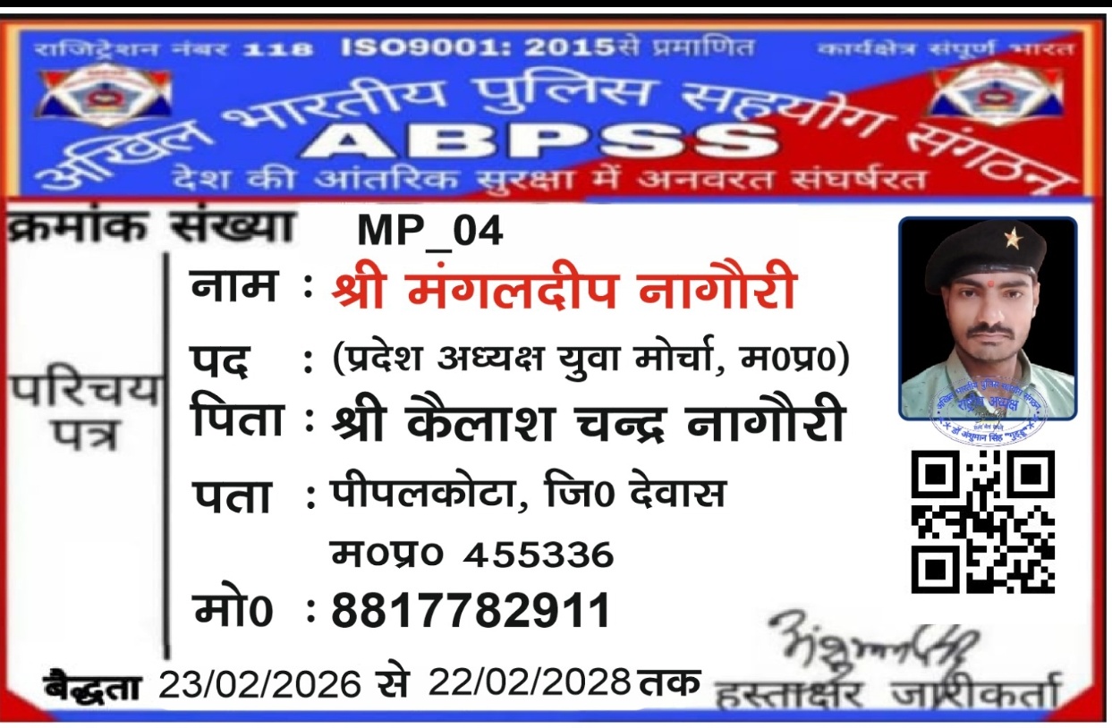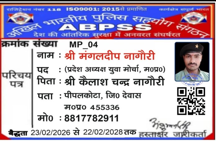 अखिल भारतीय पुलिस सहयोग संगठन के युवा प्रदेश अध्यक्ष मंगलदीप नागौरी मनोनीत ।
