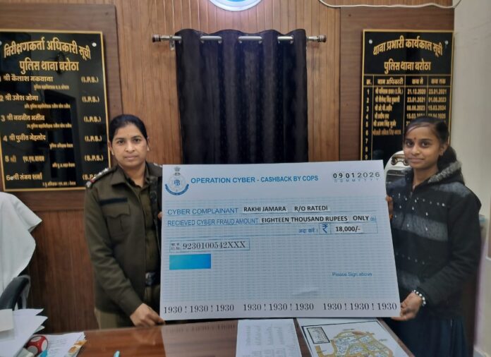 बरोठा ,देवास पुलिस द्वारा प्रारंभ किया गया “ऑपरेशन सायबर”, फ्रॉड होने के 05 माह में संपूर्ण राशि ₹ 18109/- बैंक खाते मे वापस कराई गई*।