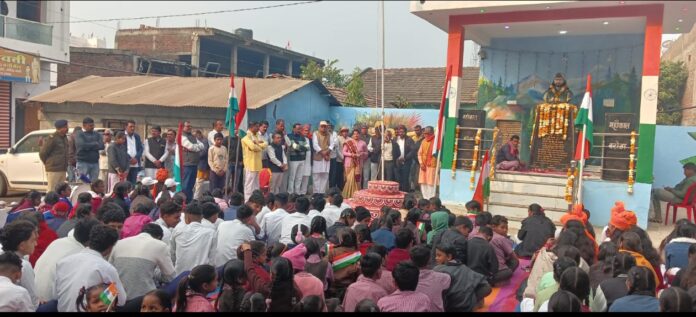 बरोठा , 77 वे गणतंत्र दिवस के अवसर पर ग्राम पंचायत बरोठा सरपंच रोहित नागर, उपसरपंच संजय सोलीवाल द्वारा पंचायत भवन परिसर, राष्ट्रपिता महात्मा गांधी प्रतिमा स्थल एवं अमर शहीद जागेश्वर धाकड़ स्मारक स्थल ग़ड़ी चौक पर ध्वजारोहण करके समस्त ग्राम वासी युवा साथी माता बहनों एवं प्यारे बच्चों, सभी शासकीय व अशासकीय विद्यालय के छात्र-छात्राओं व स्टाफ गण की उपस्थिति में गरिमामई कार्यक्रम संपन्न हुआ । इस दौरान ग्राम पंचायत सरपंच उपसरपंच द्वारा ग्राम पंचायत द्वारा किए गए विकास कार्यों के बारे में बताया गया एवं अगले होने वाले विकास कार्यों की घोषणा की गई । अंत में अतिथियों ग्राम वासियों एवं विभिन्न स्कूलों से पधारे हुए स्टाफ एवं बच्चों का आभार प्रकट बरोठा ग्राम पंचायत सचिव द्वारा किया गया । उपस्थित सभी बच्चों व ग्रामवासियों को ग्राम पंचायत द्वारा मिठाई वितरित की गई ।
