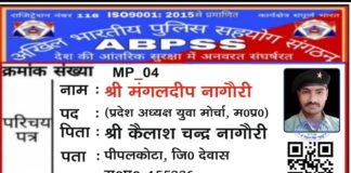 अखिल भारतीय पुलिस सहयोग संगठन के युवा प्रदेश अध्यक्ष मंगलदीप नागौरी…